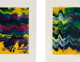 Eilis McLoughlin is a Kildare based artist. She has developed an interest in learning about the materiality of paint through the means of abstraction throughout the past few years. Eilis’s work explores the theme of human emotion, combining gestural movement with text. She explores this theme by creating large scale paintings, whilst experimenting with abstraction. She often uses a window cleaning squeegee rather than a brush in the application of paint. Her process also involves incorporating textual elements developed through her practice of journaling. She participated in the group shows Memories exist outside of time, DIVA, Dun Laoghaire (2022), In the making: Spleen at Pallas Projects (2024) and On show: On tour by IADT at Electric picnic (2024).